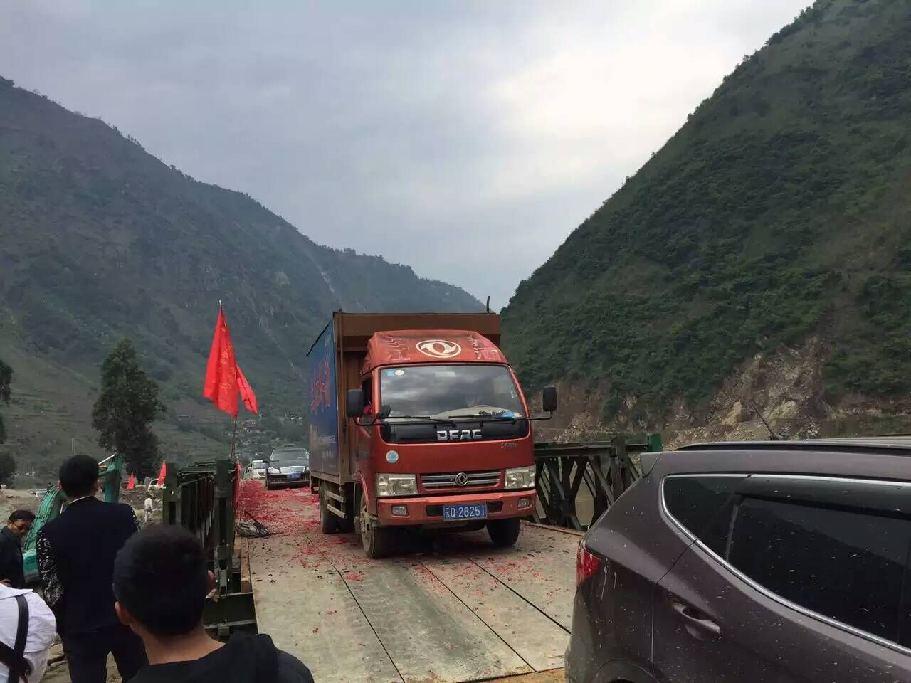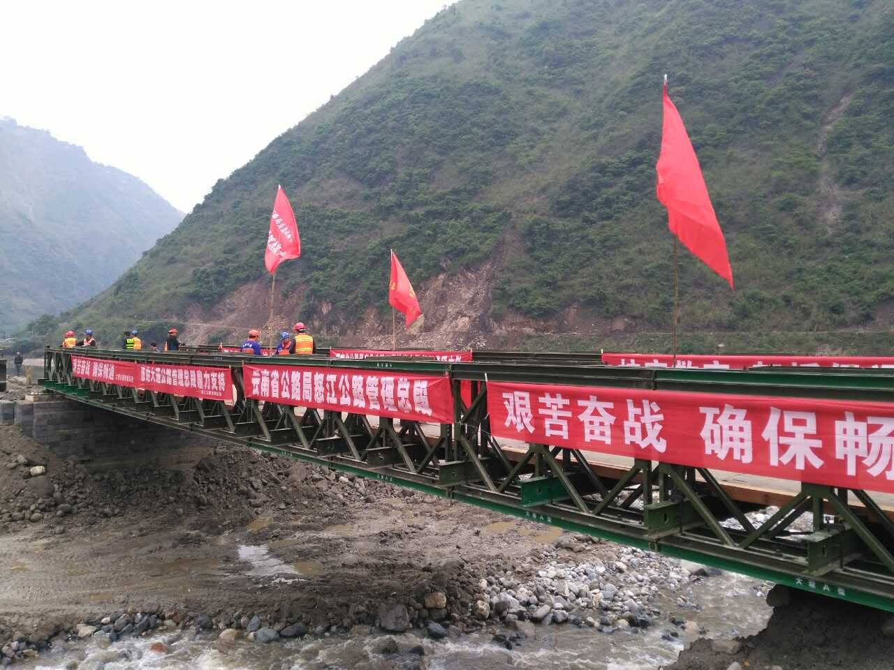 在省公路局领导及有关专家指导下,怒江总段和大理总段共同奋战,组织机械人工对洛本卓乡新村钢架桥主体进行引路铺设,现场工作人员连续奋战19个小时,于凌晨3:38完成主桥架设和装卸引桥、铺桥面板工作。经过对桥梁加固检查,桥梁两侧受损路段修复及桥梁安全检测,基本达到通车条件,2016年4月27日13点12分正式开放通行。