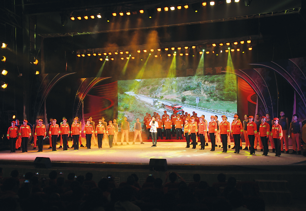 7月29日晚7时30分,下关幸福路11号艺术剧院到处洋溢着节日的喜庆,舞台被橘红色的灯光包围,大理总段500多名干部职工欢聚一堂,200多名养路工组成的演职队伍整装待发。一台精彩绝妙、振奋人心的晚会展示橘红风采、挖掘铺路石精神内涵、凝练行业价值观,把大理公路管理总段走过的60年风雨历程娓娓道来。
